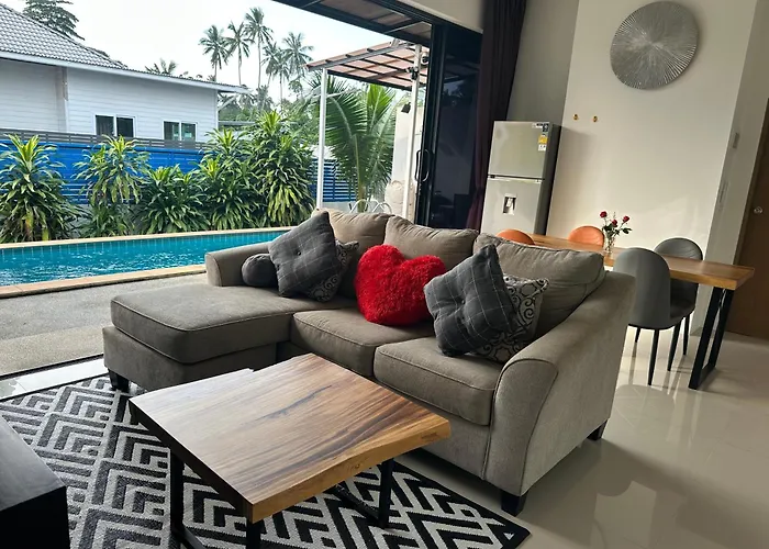 Moo 1から3.7kmのBed Luxury Pool Tan - Short Walk To Beautiful Ban Tai Beachは,プライベ-トプ-ル,パティオと無料駐車場を提供しています. ヴィラには2のべッドル-ムがあり,4の名様を収容可能です.